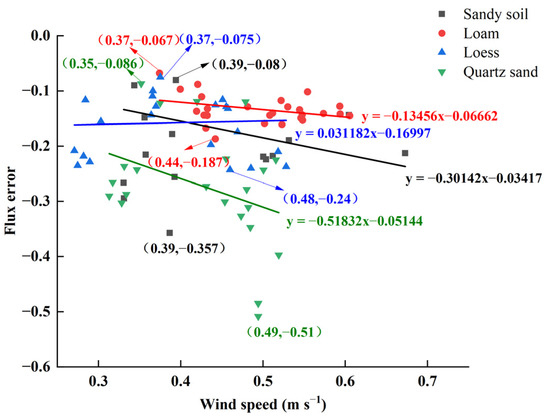 | Soil Medium | Wind Condition | Wind Speed (m s−1) | Flux Error |
