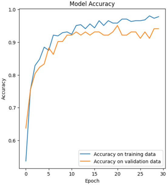 Evaluation of the recurrent neural network (RNN) model was executed with the help of Learning Curves and Validation Curves. They provide essential information regarding the effectiveness of the model in the classification of urban sounds. An analysis of these curves allows for an evaluation of both the learning process of the model and its ability to generalize on unknown data. Figure 12 and Figure 13 show the Learning Curves of the trained RNN.