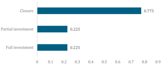 The discussion has been based on the outcome of the analysis presented in Table 4 and Figure 2. Following the results achieved, it can be noticed that the highest sum (0.775) has been assigned to the closure of the forging production area. It means that this is the most desired result of the strategy for the forging area. From the financial point of view, the closure of the forging shop is economically the best solution considering the investment needed (building, process, CO2 decarbonization, etc.) and lower costs of the components on the external market. From the suppliers’ perspective, there is also an important impact as the company would increase their purchasing volumes, so the negotiation position would also be better. On top of that, the company will not need to take care of the raw materials that have recently been issued. Of course, the company needs to take care of suppliers’ management, but it does not seem to be an issue for the company.