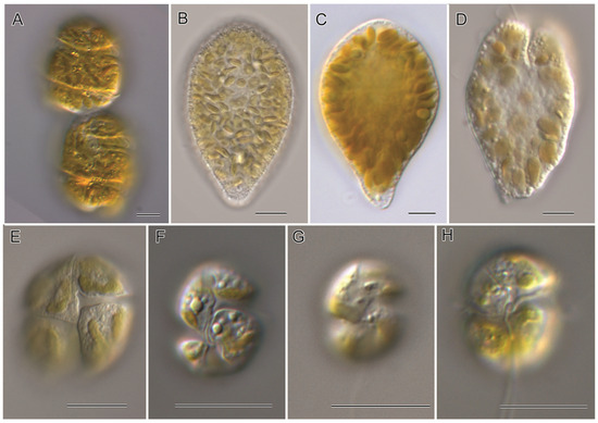 Common harmful fish-killing microalgal species in Southeast Asia. (A) Margalefidinium polykrikoides; (B), Chattonella marina; (C), Chattonella subsalsa; (D), Chattonella malayana; (E), Karenia mikimotoi; (F), Karlodinium australe; (G), Karlodinium veneficum; (H), Takayama acrotrocha. Scales, 10 µm.