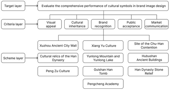 In this study, we employed Grey System Theory and the Fuzzy Evaluation Method to systematically analyze Xuzhou’s cultural symbols, aiming to comprehensively assess their relevance in city brand development. As shown in Figure 1, data collection was conducted through expert evaluations, public feedback, and literature reviews, with a focus on five dimensions: visual appeal, cultural heritage, brand recognition, public acceptance, and sustainability. To ensure a balanced assessment, we utilized the Analytic Hierarchy Process (AHP) to assign weights to these dimensions, followed by calculations using Grey System Theory and the Fuzzy Evaluation Method. By applying Grey System Theory, we constructed a comparison matrix and standard reference sequences to calculate the grey relational degree of each cultural symbol, thereby identifying their priority in relation to the desired brand design outcomes. The Fuzzy Evaluation Method facilitated the quantification of subjective evaluations from experts and the public by constructing a fuzzy judgment matrix, enabling standardized scoring across dimensions. By integrating the results from both Grey System Theory and the Fuzzy Evaluation Method, this study provides a multidimensional comprehensive evaluation of cultural symbols, effectively combining quantitative analysis and fuzzy comprehensive evaluation to establish a scientific and systematic framework for assessing the potential of cultural symbols in sustainable city brand development.