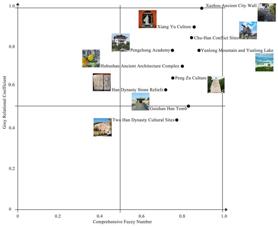 This study focuses on ten historical cultural symbols of Xuzhou: The Ancient City Wall of Xuzhou, Xiang Yu Culture, the Site of the Chu-Han Conflict, Han Dynasty Cultural Sites, Han Stone Reliefs, Pengzu Culture, Guishan Han Tomb, the Ancient Buildings of Hubushan, Yunlong Mountain and Yunlong Lake, and the Pengcheng Academy, detailed in Table 1. The selection of these symbols is grounded in their historical and cultural significance, economic impact, alignment with policy priorities, and demonstrated contributions to sustainability. The detailed rationale is outlined as follows: