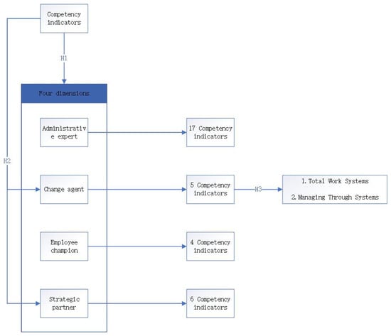 In the 1990s, Ulrich expanded the understanding of HR competencies by proposing that HR should focus on outcomes rather than processes, identifying four key roles HR professionals should play: strategic partner, change agent, employee champion, and administrative expert. Each of these roles requires specific competencies [25]. As strategic partners, HRDs must align HR strategy with business objectives, demonstrating competencies in strategic thinking and business acumen. As change agents, they are responsible for driving organizational transformation, requiring competencies in change management and innovation. The role of employee champion focuses on advocating for employee needs and creating a supportive work environment, which involves competencies in employee relations and engagement. Lastly, as administrative experts, HRDs must ensure the efficient and effective management of HR operations, which includes competencies in operational efficiency and HR technology management [26]. This framework aligns with the Resource-Based View (RBV), which posits that a firm’s internal resources, such as the competencies of HRDs, are critical for maintaining a sustainable competitive advantage [27]. In the context of digital transformation, the ability of HRDs to fulfill these four roles becomes even more essential, as they must navigate the complexities of exponential organizations that leverage digital technologies for disproportionate impact. HRDs competencies, therefore, serve as strategic resources that enable organizations to remain competitive in a rapidly changing business environment. Given these theoretical foundations and the evolving role of HRDs, this study proposes the following hypothesis: