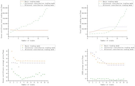 - After the analysis of the results of the three trading modes, it is found that the UCM is more conducive to promoting market articulation and stimulating the trading activity of the green certificate market while promoting the development of CCER projects;