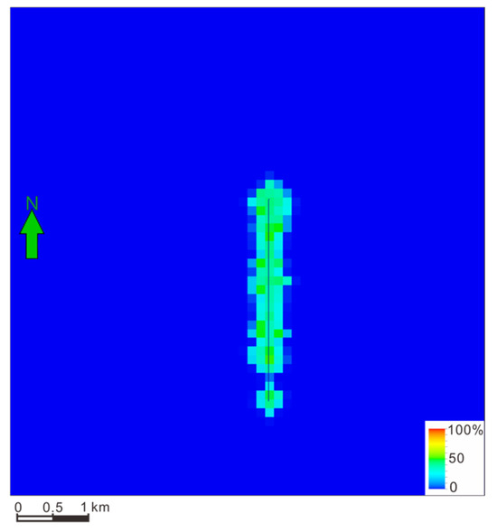 In migration simulations, the streamline method is frequently used to delineate the migration pathways of fluids. In this study, it was employed to simulate the CO2 migration. The simulation suggests that CO2 extends outward from the injection interval, with a predominant migration towards the east and west. The CO2 saturation remains between 0 and 50% near the injection interval, within an approximate range of 700 m on the horizontal plane. CO2 saturation drops to 0% when the reservoirs are far away from the well. This indicates that CO2 could not migrate far, but rather is accumulated around the injection interval (Figure 16). The results of this simulation are also in agreement with the analysis derived from the gas potential.