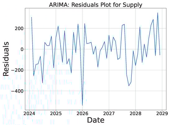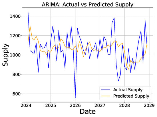 where represents the demand or supply at time t, c is a constant term, and are autoregressive and moving average coefficients, respectively, while denotes the error term [20].