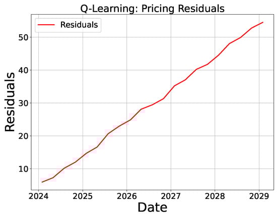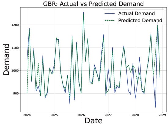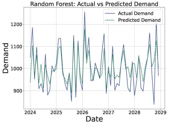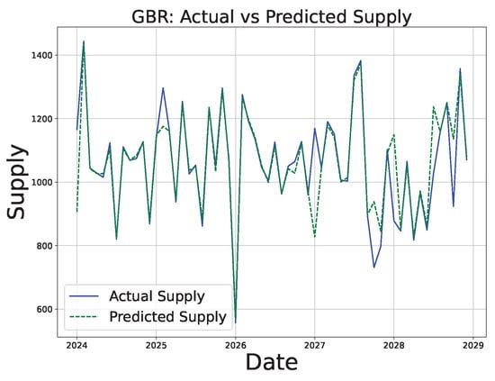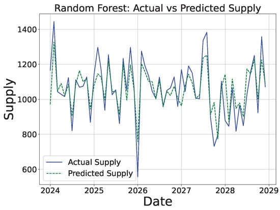 Demand-supply alignment is essential for CE systems, where inventory fluctuations directly impact resource allocation efficiency. Traditional time series models like ARIMA, configured with the parameters , , and , effectively captured periodic trends for short-to-medium-term forecasts, which is relevant in applications such as urban waste management. For more complex seasonal patterns, Prophet’s ability to decompose time series data proved advantageous in scenarios with cyclical resource flows, while random forest and GBR excelled in capturing nonlinear relationships among variables like resource availability, waste generation, and pricing. Q-learning supported dynamic pricing by stabilizing action-value functions in real time, fostering equilibrium in CE marketplaces and reducing resource stockpiling or waste.
