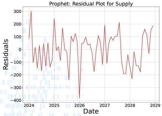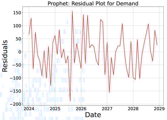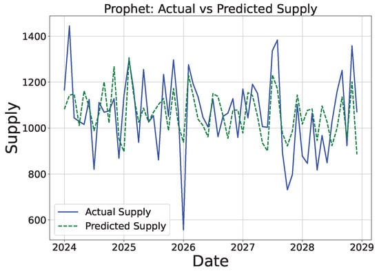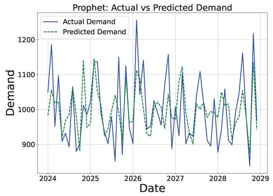 Prophet’s robustness in managing missing data and outliers, coupled with its versatile trend and seasonality modeling, positions it as an effective tool for CE applications. By incorporating external influences, such as holidays and policy shifts, Prophet provides a comprehensive framework for examining complex behaviors in CE marketplaces, supporting informed decision making in resource allocation and demand management [25,26].