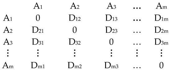 At this stage, the dataset [26,27] consisting of monthly wind speed and agricultural areas is individually analyzed using Entropy–TOPSIS. (These agricultural area datasets across Thailand were recorded and updated by the Land Development Department of Thailand [27] and are served as secondary or open-source data for researchers in agriculture and renewable energy in Thailand.) Initially, data from two perspectives (monthly wind speed and agricultural areas) are organized into a tabular format, as illustrated in Table 1, where “Ai” denotes area i and “xi,j” signifies the value of area i for attribute j.