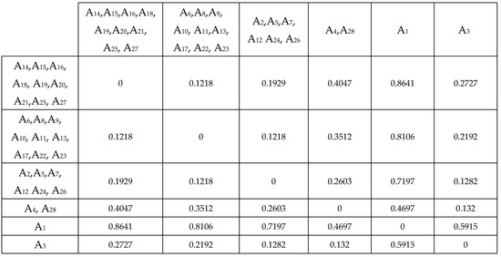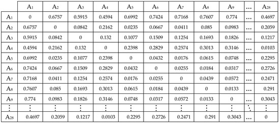 - Generate dissimilarity matrix: the 28 × 28 dissimilarity matrix called the 28 × 28 initial matrix is created shown in Figure 4.