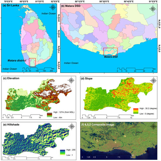 22], this province has experienced notable changes in LULC due to increased urbanization and infrastructure development over recent decades. Urbanization and increasing population density have markedly altered the landscape in recent decades. The Matara Divisional Secretariat Division (DSD) was selected for this study due to its status as one of Sri Lanka’s municipalities and its strategic location connecting major cities like Galle and Hambantota. The area has seen substantial urban expansion driven by growing demand for residential, commercial, and recreational facilities, influenced by its popularity as a tourist destination.