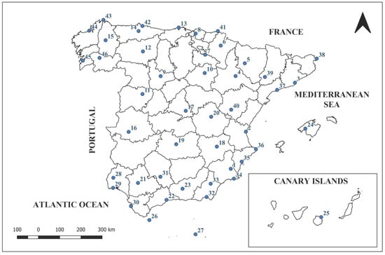 | 16 | Cáceres | Cáceres | 39.475 | −6.374 |
