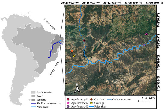 - Silva, J.M.C.; Barbosa, L.C.F.; Leal, I.R.; Tabarelli, M. The Caatinga: Understanding the Challenges. In Caatinga: The Largest Tropical Dry Forest Region in South America; Silva, J.M.C., Barbosa, L.C.F., Leal, I.R., Tabarelli, M., Eds.; Springer: Cham, Switzerland, 2017; pp. 3–19. [Google Scholar]