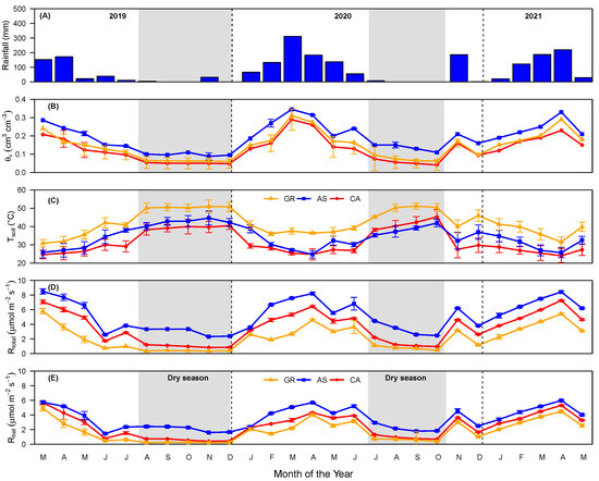 - Lima, J.R.d.S.; Souza, R.M.S.; de Sá Barreto Sampaio, E.V.; Antonino, A.C.D.; de Souza, E.S.; de Medeiros, É.V.; Duda, G.P.; Ferreira, C.R.P.C.; Menezes, R.S.C.; Hammecker, C. Moisture, temperature and respiration of two soil classes under pasture and tropical dry forest in the semiarid brazilian region. J. Arid Environ. 2023, 214, 104981. [Google Scholar] [CrossRef]