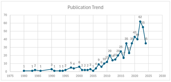 Figure 2 illustrates the publication trends in financial literacy and retirement from 1975 to October 2024. A detailed analysis of the trend is discussed: