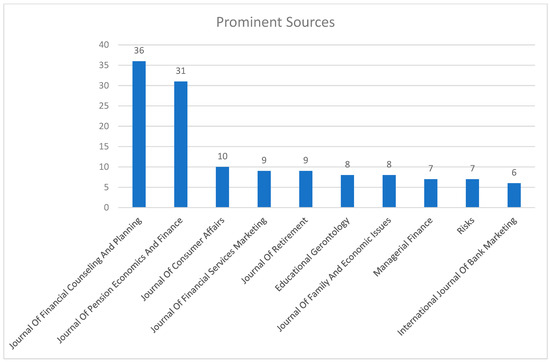 Prominent sources (journals) on financial literacy and retirement for the period 1970–2024. Source: Authors’ elaboration based on Bibliometrix R-package (Biblioshiny) output.