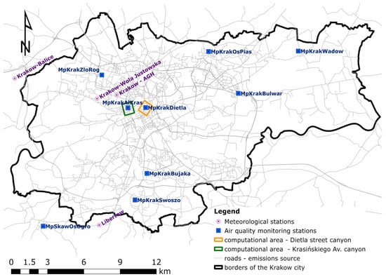 - Bogacki, M.; Rzeszutek, M.; Heba, K. Modelowanie dyspersji zanieczyszczeń powietrza w kanionie ulicznym na przykładzie Alei Krasińskiego w Krakowie. J. Civ. Eng. Environ. Archit. 2016, 33, 21–38. [Google Scholar] [CrossRef][Green Version]