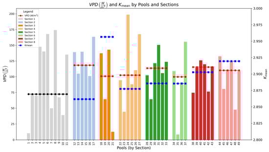 | Sections | Flow Velocity (m/s) | VPD (W/m3) | ||||