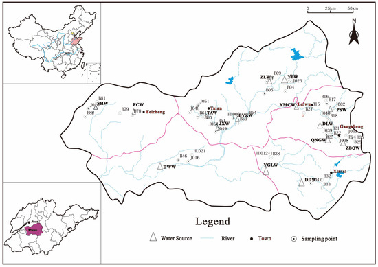 - Cai, R.; Deng, Y.; Ni, F.; Pu, R.; Tang, Y. Temporal and Spatial Variation Characteristics of Health Risk Assessment of Nitrogen in Rural Drinking Water Sources-A Case of Mingshan District. Adv. Eng. Sci. 2015, 47 (Suppl. 2), 40–46. (In Chinese) [Google Scholar]