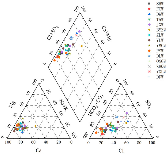 | Dongwu water source | HCO3·Cl—Ca | HCO3·SO4—Ca; HCO3·SO4·Cl—Ca |