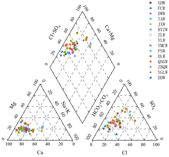 | Tai’an urban water source | HCO3·Cl—Ca | HCO3·SO4—Ca; HCO3·SO4·Cl—Ca |