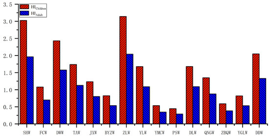 - Based on the data derived from the health risk assessment model, drinking groundwater contaminated with nitrate posed a more severe non-carcinogenic risk than nitrate exposure through skin contact. Ten of the fifteen water sources in the Tailai Basin exhibited a non-carcinogenic risk HI exceeding 1, affecting children more than adults.