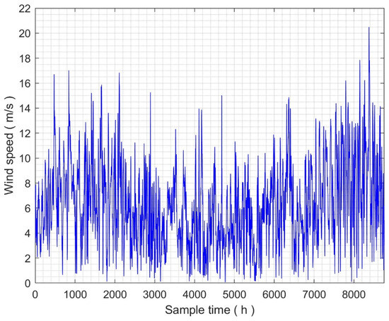 Hourly annual wind speed values.