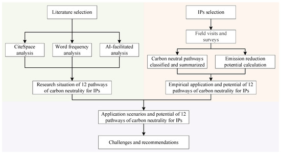 Based on the 12 carbon neutrality pathways for IPs that were proposed based on the concepts and logic of IP development, we analyzed the existing literature using Citespace and ChatGpt. We also determined the practical application of the 12 pathways using a field investigation of 104 IPs in China. Finally, we quantified the carbon emission reduction potentials of the different pathways using the HXIP as the research object. The main conclusions were as follows: