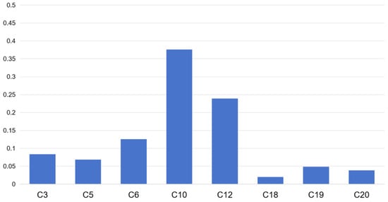 Figure 8, C10 remote reservation (0.3761) ranks first, followed by C12 multiple interaction modes (0.2392) and C6 convenience of nighttime operation (0.1255). Next are C3 ergonomic design (0.0833), C5 cable management (0.0686), C19 simplified APP registration (0.0485), C20 unified platform (0.0385), and C18 entertainment services (0.0204), which ranks last. C10 remote reservation is the most important requirement for users. Efficient parking management not only improves users’ operational efficiency but also reduces unnecessary waiting time, thereby greatly optimizing the overall operation experience of charging stations. C12 multiple interaction modes ranks second, reflecting users’ preference for diversified interaction methods, particularly voice control, touchscreen operation, or remote control via mobile devices. By introducing multiple interaction modes, charging stations can better cater to the operational habits and needs of different users, enhancing the user-friendliness of human–machine interactions. C6 convenience of nighttime operation ranks third, highlighting users’ attention to the nighttime experience at charging stations. Clear interface design, adequate lighting, and simplified operational steps can significantly improve the convenience of charging at night. This indicator emphasizes the importance of charging stations being user-friendly in all weather and lighting conditions, reflecting a deep understanding of users’ needs in various scenarios. C20 unified platform and C18 entertainment services rank lower in user demand, indicating that they have less influence on users’ choice of charging stations. While a unified platform can simplify the management of multiple charging stations and reduce the hassle of switching between apps, it does not significantly enhance the core charging experience. Although entertainment services may improve the waiting experience during charging, their attractiveness is weaker compared to parking management and compatibility requirements.