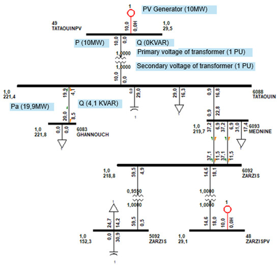 Diagram of a part of the southern region of Tunisia connected to PV solar generators.