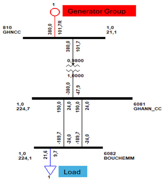 The grid of our study is the Tunisian network, which has a 225 kV level transmission network. This network is composed of various nodes, lines, generators, loads, and transformers. It is a simplified model that will facilitate dynamic stability studies of various scenarios.