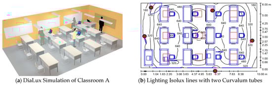 - Dong, W.; Qi, R.; Zhang, W.; Liu, X.; Huang, K. Research on Optimization of University Classroom Lighting Environment Based on Computer Simulation. J. Electr. Syst. 2024, 20, 100–108. [Google Scholar] [CrossRef]