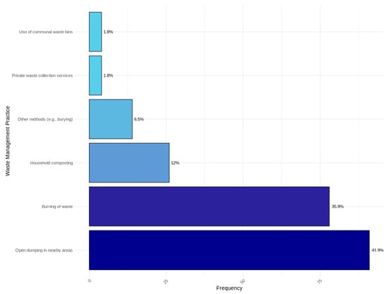 49]. Ensuring that households have the necessary resources to manage waste properly will reduce reliance on unsafe disposal methods, while the proximity of disposal sites will encourage more residents to use formal waste services [