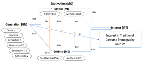 Interest in traditional costume photography is closely tied to these motivations. Intrinsic factors, such as cultural identity, creativity, or personal growth, significantly influence individuals’ engagement by imbuing the activity with personal meaning and satisfaction (H3a). Similarly, extrinsic factors, such as social recognition, digital validation, or tangible rewards, drive interest by providing external incentives, particularly in the digital era, where social media plays a pivotal role (H3b). Together, these motivations illustrate the interplay between personal values and external rewards in shaping generational engagement with traditional costume photography.
