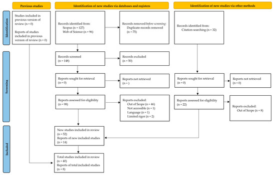 An aggregate of 223 articles was first detected and appraised for further screening. Another 32 records were also identified throughout the citation scan, upgrading existing structures, as shown in Figure 3.