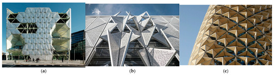 Some representatives built projects with responsive kinetic facades. (a) Media-ICT, Barcelona (ES), Project of Enric Ruiz Geli, 2010. (b) University of Southern Denmark, campus Kolding, Kolding (DK), Project of Henning Larsen Architects, 2014. (c) Al Bahar Towers, Abu Dhabi (UAE), Project of Aedas Architects, 2012.