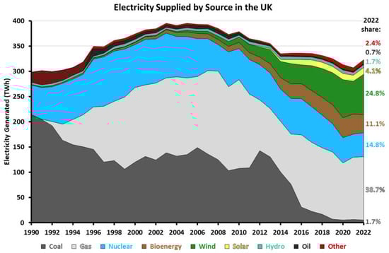 - Energy Trends: UK, October to December 2022 and 2022. 2023. Available online: https://assets.publishing.service.gov.uk/government/uploads/system/uploads/attachment_data/file/1147249/Energy_Trends_March_2023.pdf (accessed on 8 December 2024).