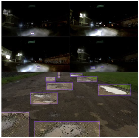 - Additionally, we developed a primary dataset based on these public resources, incorporating further annotations and samples specifically tailored for night-time pothole detection. This custom dataset, hosted on Roboflow Universe [], provides more refined annotations for low-light conditions, supporting our focus on enhanced detection performance.