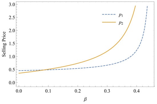 The effect of β on selling prices under scenario .