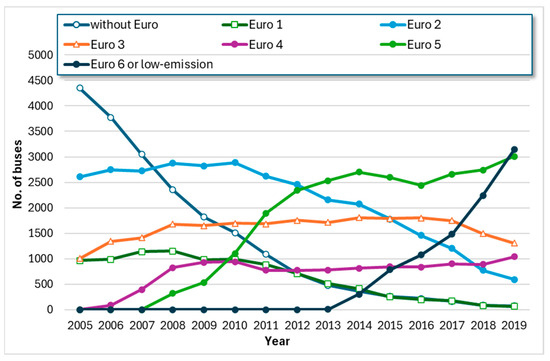 - Izba Gospodarczej Komunikacji Miejskiej. Komunikacja Miejska w Liczbach (Public Transport in Numbers). Available online: https://igkm.pl/statystyka/ (accessed on 24 October 2024).