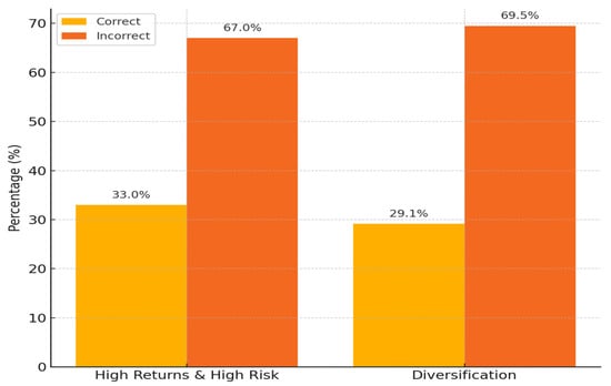 The research indicates that a significant proportion of adults in Montenegro lack a comprehensive understanding of key financial concepts, specifically risk, return, and investment. As presented in Figure 3. approximately one-third of respondents incorrectly identified the relationship between high expected returns and high risk. Furthermore, over two-thirds demonstrated a lack of understanding regarding diversification, with 69.5% incorrectly responding that it is not possible to reduce risk in the stock market by purchasing multiple stocks. Only 29.15% correctly acknowledged this concept.