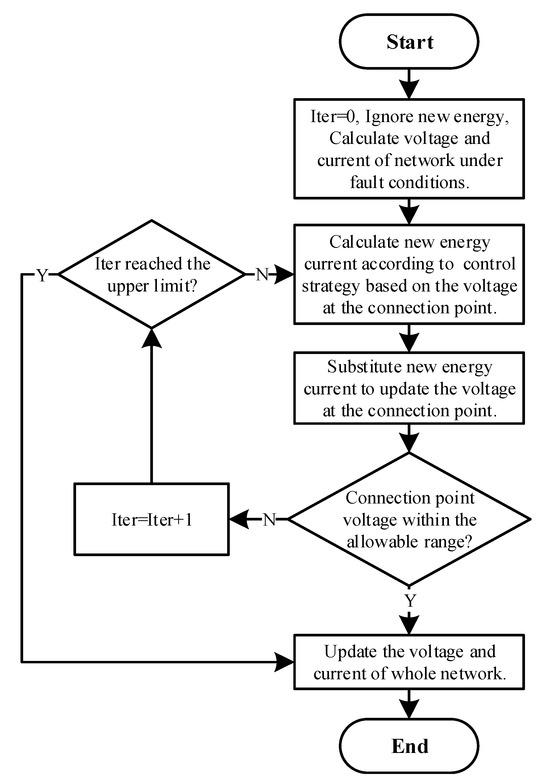 The block diagram of the local iterative method for calculating the short-circuit current in a network with new energy sources is shown in Figure 5 [25].