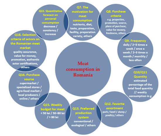 Main aspects of meat consumption items. Source: own items design and figure processing.
