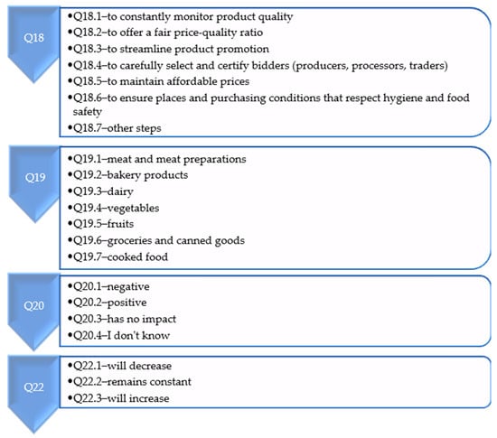 Frequencies obtained from the analysis of variables Q18, Q19, Q20, and Q22.