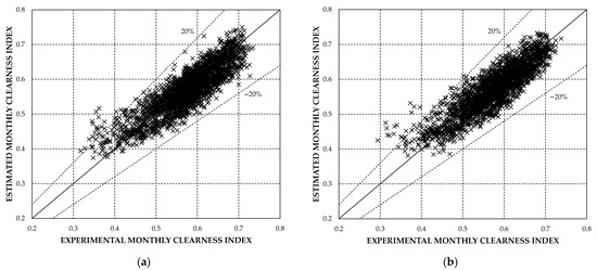 In any case, the less accurate estimates seem to be related to climate types where the clearness index tends to be higher in winter than in summer, which is the case in few locations on the northern Spanish coast. This result is consistent with the estimates obtained for the Japanese locality of Sendai and suggests that the sign of the difference between the clearness indices in June and December may be a basic indicator of climatic variability as a complement to the Köppen–Geiger classification.