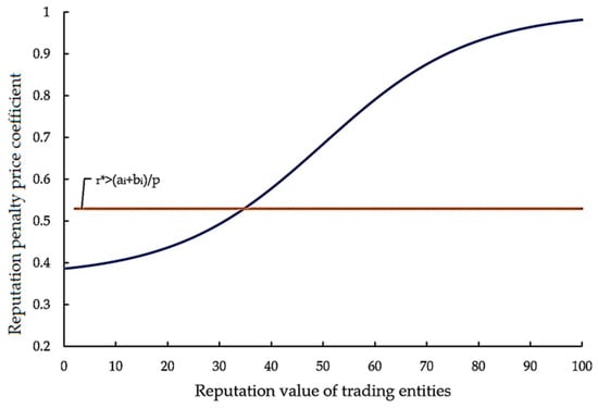 Through the above mechanism, the trend of changes in reputation value can be obtained, as shown in Figure 1. The minimum reputation value of each trading entity can be derived through the cost function of the following transactions. When the minimum reputation value is reached, the trading party will be eliminated by the market mechanism.