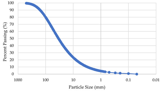 A coarse aggregate of gravel with a specific gravity of 2.68 and a maximum particle size of 19 mm (0.75 in) and a fine aggregate with a specific gravity of 2.35 and a fineness modulus of 2.58 were used in this study. Figure 5 presents the particle size distribution of sand and gravel used in this study.