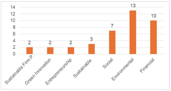 Figure 4 shows more clearly which of the SFP sub-dimensions the studies included in the meta-analysis within the scope of this study addressed the most and which performance the researchers evaluated the most. The graph shows that researchers generally conducted research on environmental (13), financial (10), and social (7) performance.