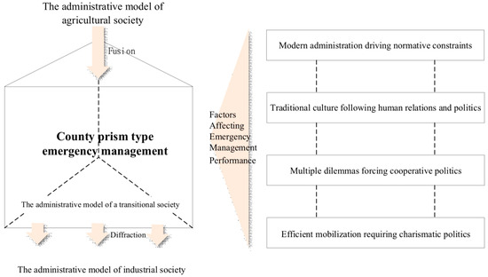 During the transition period, China’s county emergency management conforms to the characteristics of “prismatic” administrative model mentioned in Riggs’ administrative ecology. Through further thinking, the county-level prismatic emergency management model is the result of the combined effect of the specific administrative system and political culture of developing countries. It is also a true portrayal of China’s governance and China’s solution at the county level in the process of governance modernization. From a higher level, this also reflects the social development tension manifested by developing countries or regions facing traditional and modern factors in the process of social change or transformation, that is, retaining the administrative inertia under the influence of traditional cultural factors to a certain extent. This also shows the vulnerability under the impact of the modern technological system. From the perspective of the social development process, with the advancement of social transformation, the prismatic administrative form of the county will gradually transform into the integrated administrative ecology of the modern industrial society. Realizing the evolutionary route from centralization to decentralization, from unity to pluralism, from regulation to service, and from rule of man to rule of law involves the modifications of multiple factors such as politics, economy, culture, and environment.
