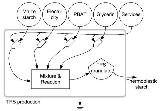 To elaborate on the life cycle inventory (LCI), we used the data from the development process of the biodegradable polymer (TPS) made by the partnership UFPR/UEL and the data collected in the production process to manufacture HDPE and LDPE plastic bags. It is worth mentioning that the industrial process used to obtain the HDPE and LDPE plastic bag data is the same process used to carry out biodegradable polymer manufacturing tests. The industry data were obtained from a packaging industry located in the metropolitan region of Curitiba, Paraná, Brazil.